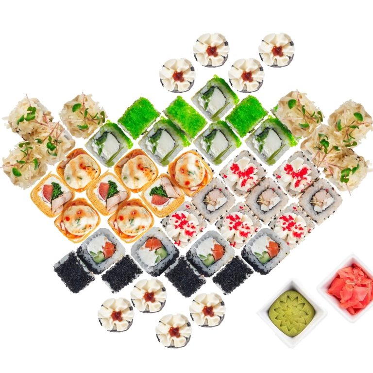 — Роллы и суши — с васаби, имбирём и авторскими соусами.