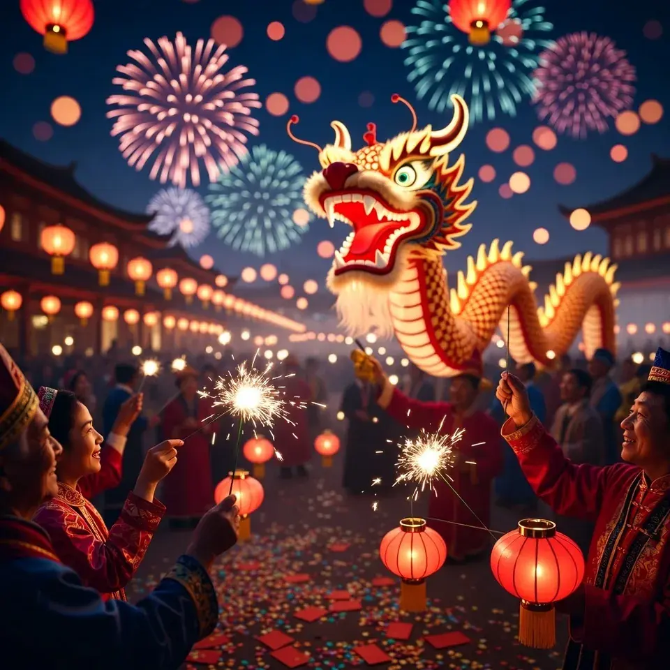 Китайский новый год — это один из самых ярких и масштабных праздников, который длится 15 дней. Традиции включают уборку домов, красные украшения, семейные ужины и фейерверки.