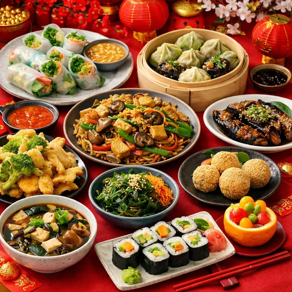 Вегетарианское азиатское новогоднее меню сочетает вкус и глубокий символизм. Каждое блюдо несёт пожелания здоровья, гармонии и изобилия. Правильный выбор ингредиентов, их сочетание и подача позволяют создать атмосферу, полную позитива, тепла и удачи.