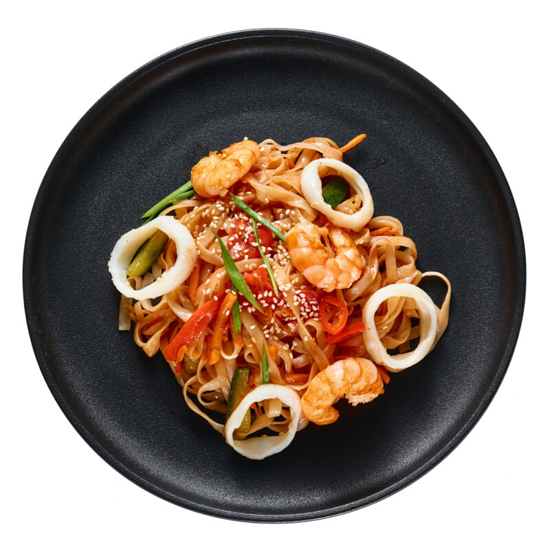 - Обед: Лапша удон с овощами и креветками, заправленная легким соевым соусом.