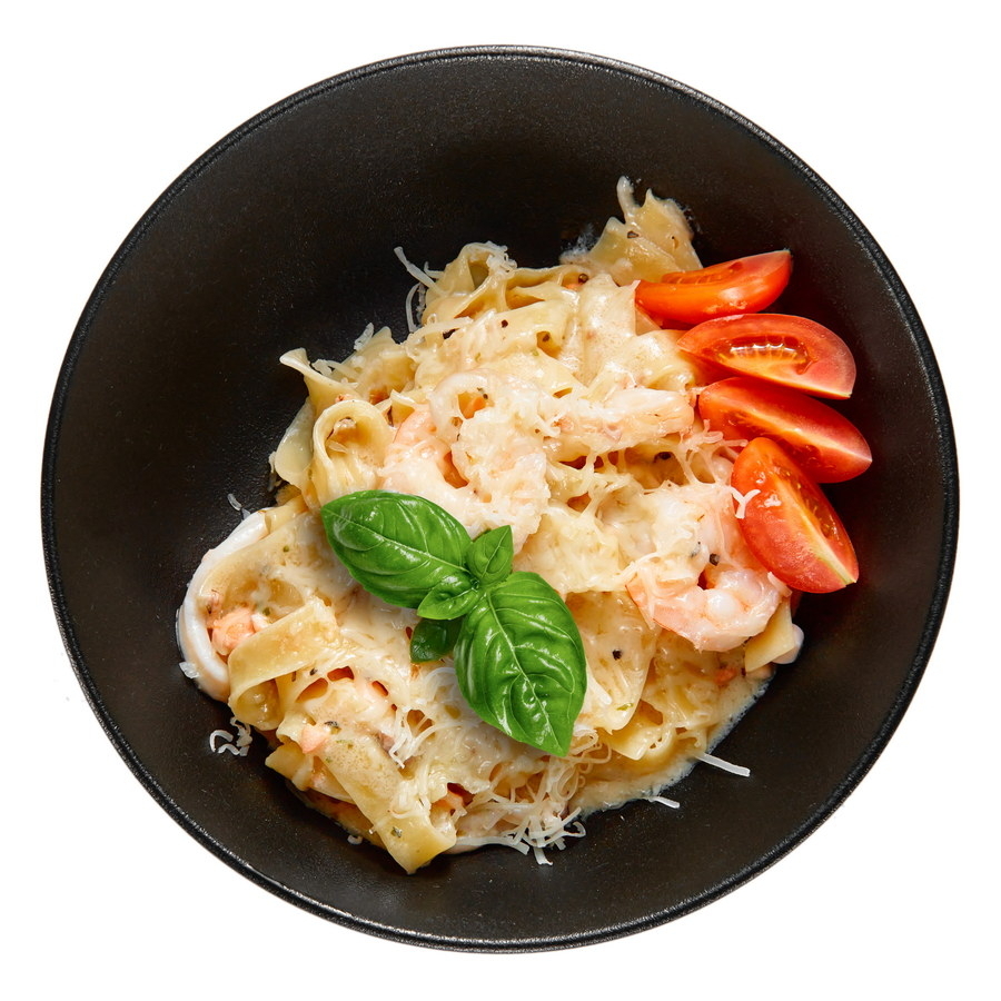 Паста феттучини в сочетании с нежными креветками, сочным лососем и кальмаром, дополненную свежими помидорками черри. Сливочно-чесночный соус придаёт блюду насыщенный вкус, а тертый пармезан завершает изысканным акцентом.