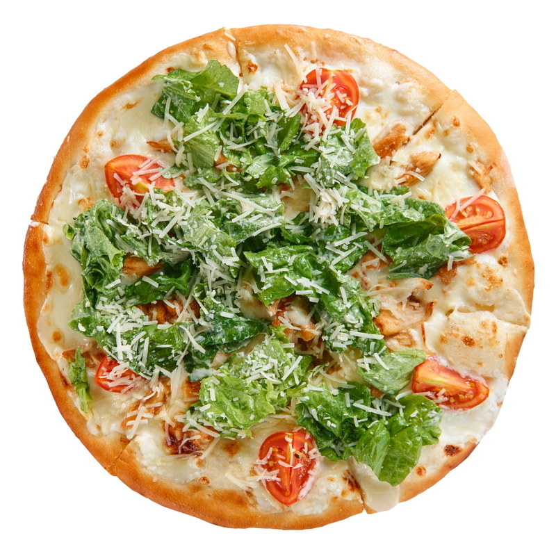 Пицца на тонком тесте с нежным куриным филе, сочными помидорками черри, свежим листом салата, сыром пармезан и нежным соусом на основе сливок и чеснока. Эта пицца – идеальный выбор для тех, кто ценит традиции итальянской кухни.
