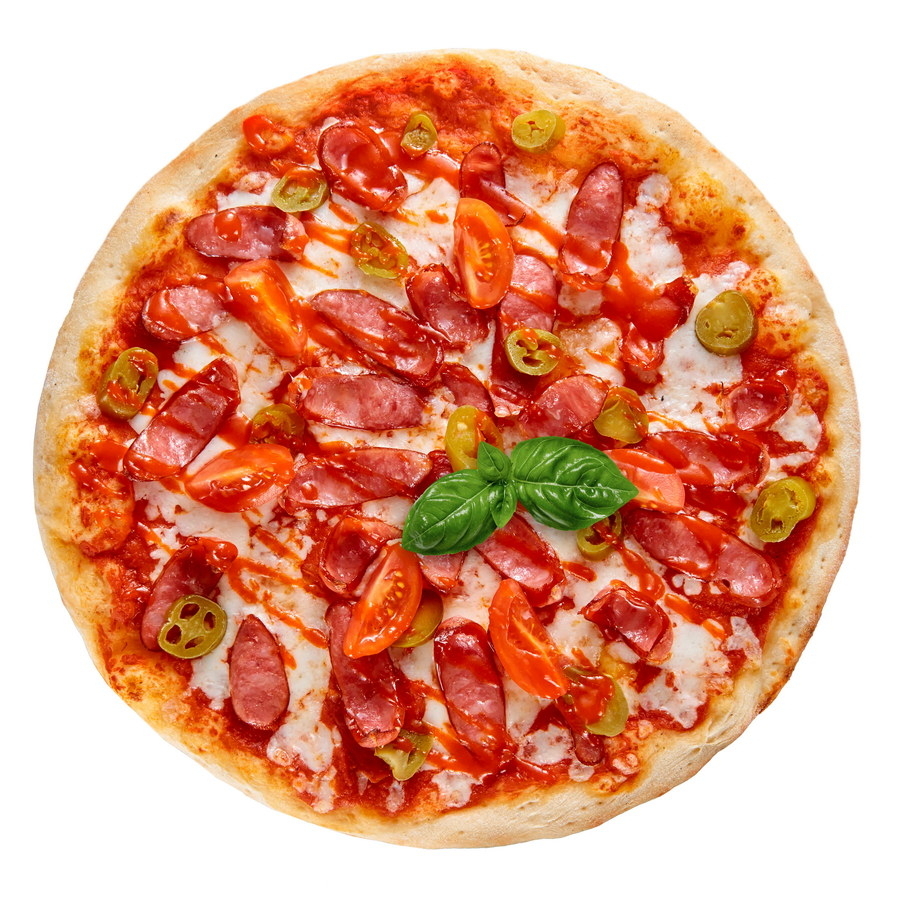 Пицца на тонком тесте с соусом из спелых томатов, нежной моцареллой, копчёными охотничьими колбасками, острым перчиком халапеньо, сочными помидорками черри и фирменным соусом шрирача. Каждый кусочек пропитан страстью и яркостью, которую дарит «Диабло».