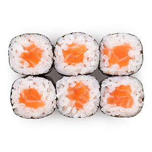 Сяки Маки это сочетание простоты и вкуса в листе нори с заправленным рисом, лососем и соусом крем васаби. Блюдо подаётся комплектом имбиря, васаби и соевого соуса. В порции 8 штук