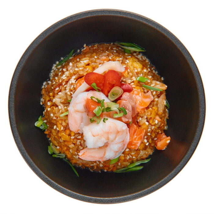 Сочетание обжаренного риса, свеже обжаренных креветок, кальмара, яйца , микса соусов: устричного и соевого, чеснока и перчика чили. Каждая порция украшается кунжутом и свежим зелёным луком.